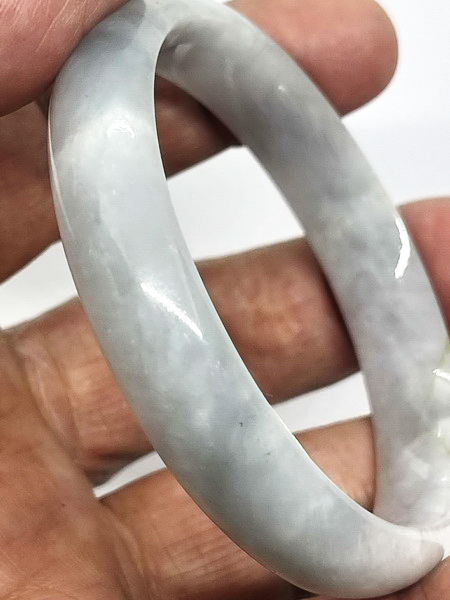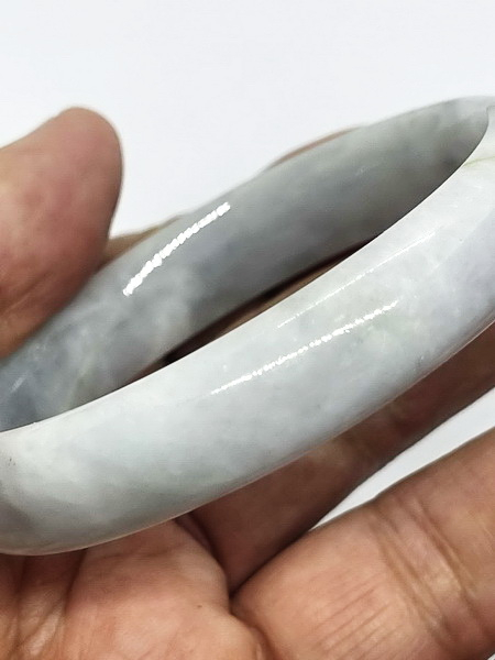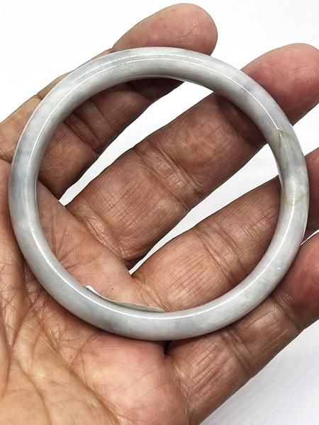 กำไลหยกสีม่วง วงนี้ เป็นหยกพม่าสีม่วงเนื้อวุ้น แสงลอดได้ เป็นกำไลท้องปลิง เจไดต์ Type A ขนาดหน้ากว้าง 12.40 มม. หนา 6.70 มม. เส้นผ่าศูนย์กลางภายใน 57.58 มม.