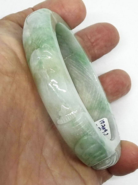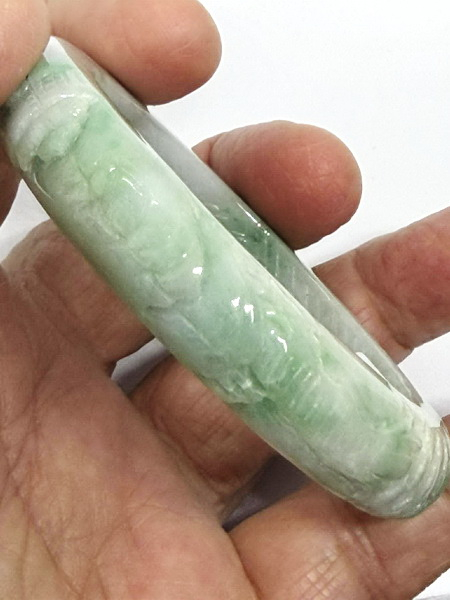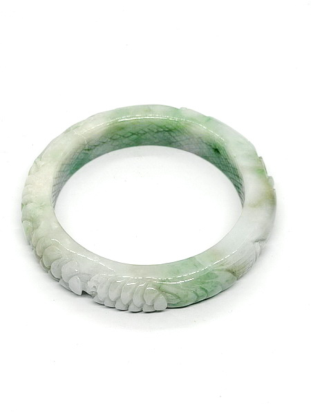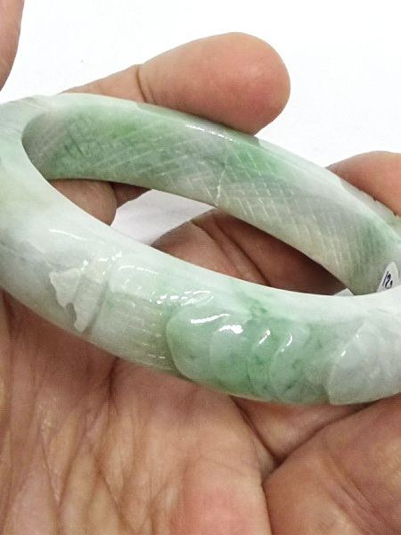 กำไลหยก วงนี้ เป็นหยกพม่าสามสี คือ สีขาว สีเขียว และสีแดง หน้ากว้าง 12.7 มม. หนา 9.2 มม. เส้นผ่าศูนย์กลางภายใน 56.1 มม.