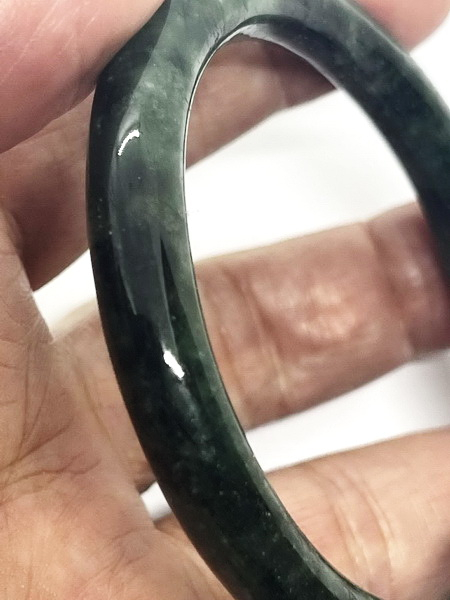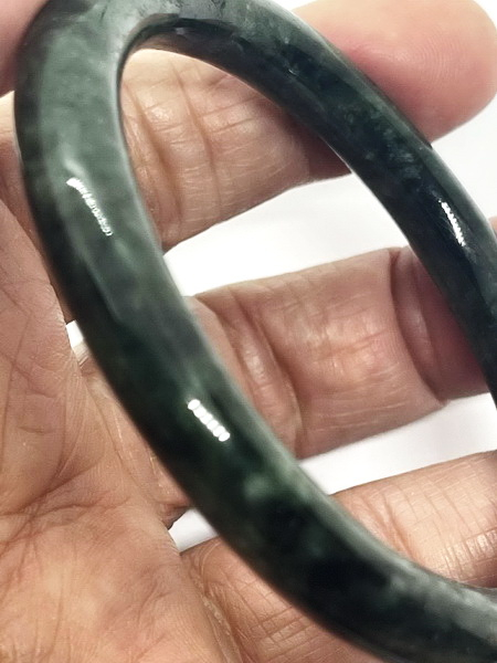 กำไลหยกพม่าวงนี้ เป็นหยกพม่า สีเขียวเข้มเต็มวง แสงลอดได้ ทรงโดนัท หรือทรงมวนบุหรี่ เป็นหยกเจไดต์ Type A มีขนาดหน้ากว้าง 8.33 มม. หนา 8.54 มม. เส้นผ่าศูนย์กลาง 58.63 มม.