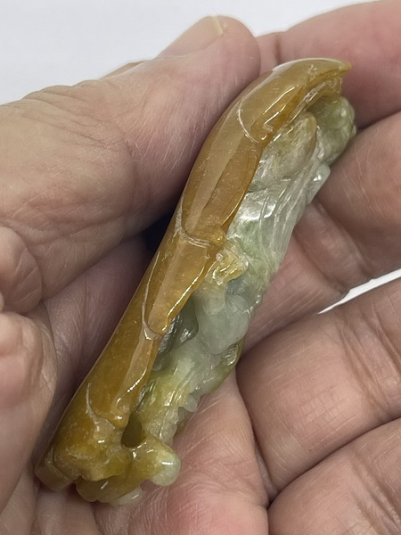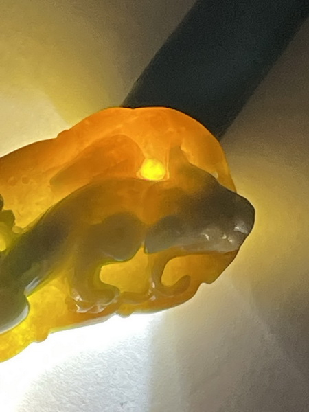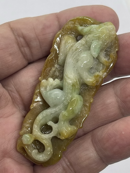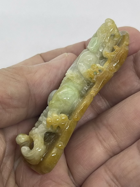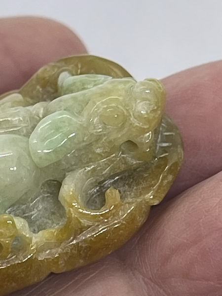 ปีเซียะหยก ชิ้นนี้ แกะจากหยกสามสีพม่าเกรดพรีเมี่ยมสีเหลือง สีเขียว และสีขาว เนื้อหยกเงางาม เป็นหยกเจไดต์ Type A มีขนาดกว้าง 28.9 มม. ยาว 66.75มม. สูง 14.96 มม. น้ำหนัก 198.9 กะรัต