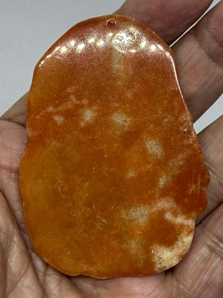จี้หยกแดง ชิ้นนี้ แกะจากหยกพม่าสีแดงน้ำตาล เป็นหยกเจไดต์ Type A  เนื้อหยกไม่ตัน แสงลอดผ่านได้ แกะเป็นมังกรคู่ เนื้อหยกเนียนมันเงาสวย เจไดต์ Type A มีขนาดกว้าง 51.4 มม. สูง 70.5 มม. หนา 13.2 มม.