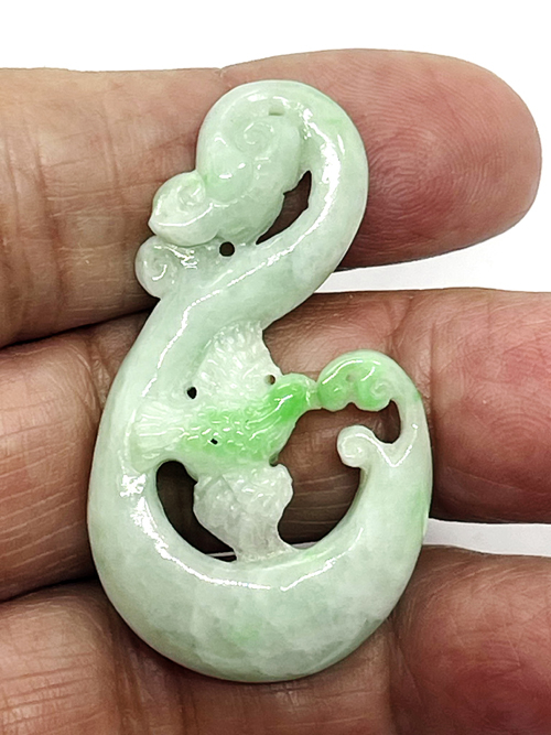 จี้เหรียญหยกเขียวกรีนแอปเปิ้ลและเขียวอ่อนพม่า-นกและดอกไม้ (Burmese Green Jade Bird & Flower Pandant)