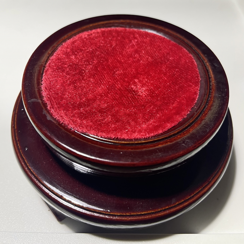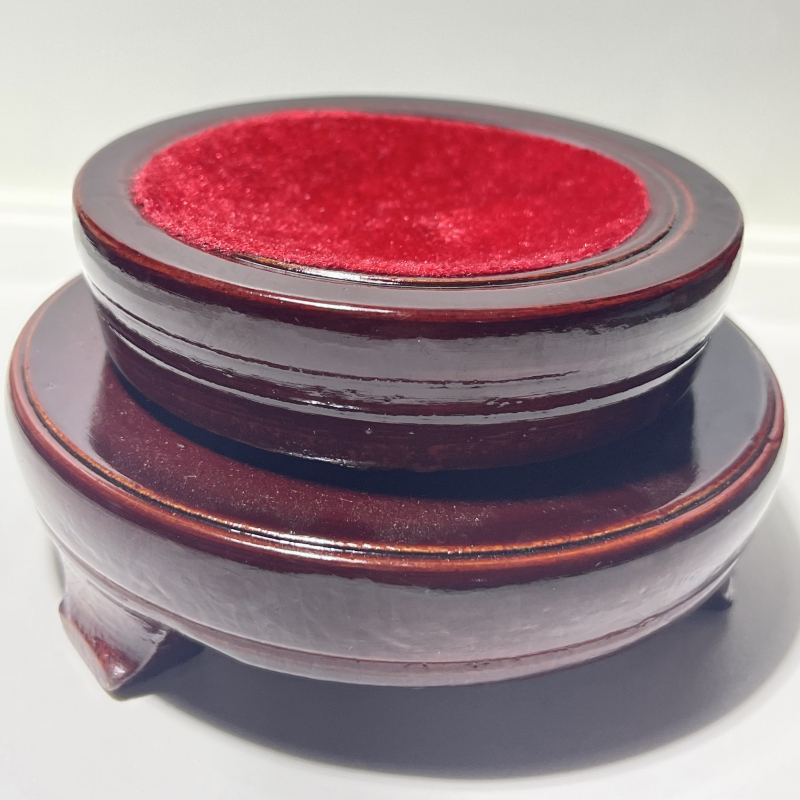 ฐานไม้นี้ เป็นฐานวางลูกแก้วแบบสองชั้น หมุนลูกแก้วได้ผลิตจากไม้เนื้อดี สีน้ำตาลแดง มีขนาดเส้นผ่าศูนย์กลางชั้นล่าง10.5 ซม. ชั้นบน9 ซม. สูง 5.5 ซม. สามารถวางลูกแก้วขนาด 4-6 นิ้ว แข็งแรงทนทาน