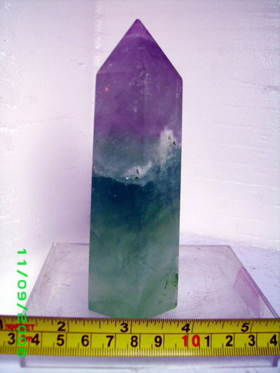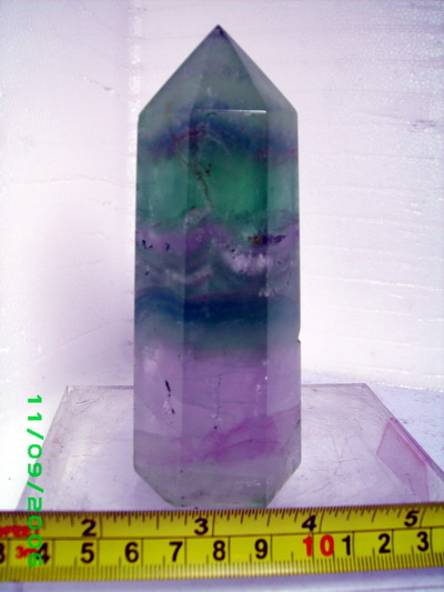 หินฟลูออไรท์ทรงหกเหลี่ยมสีสวยแท่งนี้ขนาดความยาว 12 ซ.ม. หนัก 430 กรัม
