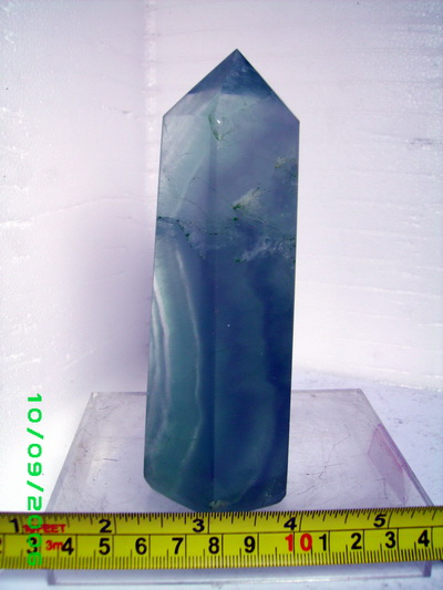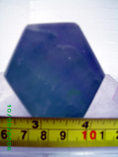 หินฟลูออไรท์ทรงหกเหลี่ยมสีสวยแท่งนี้ขนาดความยาว 12.5 ซ.ม. หนัก 472 กรัม