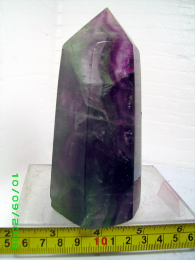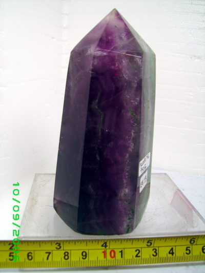 หินฟลูออไรท์ทรงหกเหลี่ยมสีสวยแท่งนี้ มีขนาดกวัาง 53 มม.ยาว 59 มม. สูง 120 มม. หนัก 590 กรัม