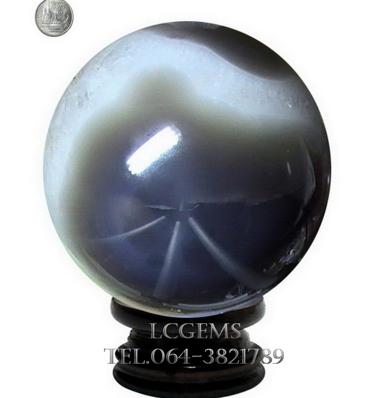 ลูกแก้วอาเกต ลูกนี้ สีขาวแจมน้ำตาล เป็นอาเกตบราซิล มีขนาดเส้นผ่าศูนย์กลางประมาณ 5 นิ้ว