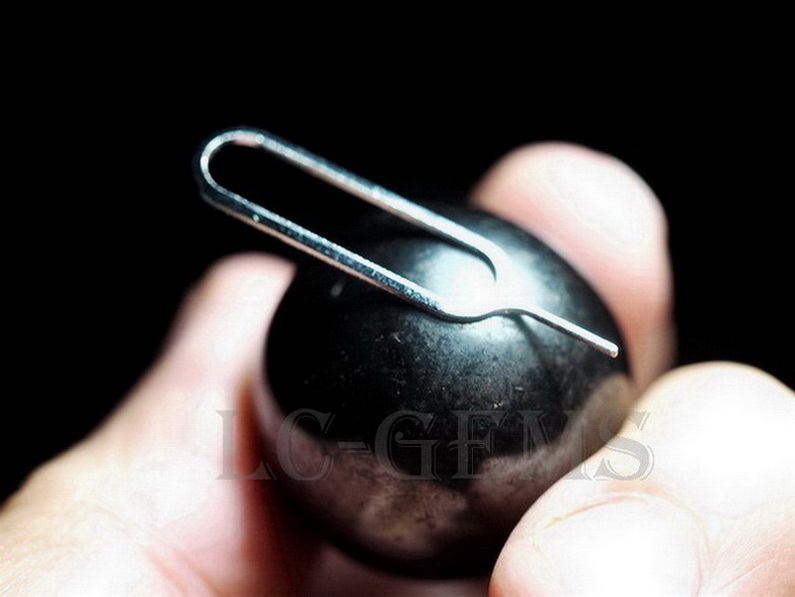 ลูกแก้วเฮมาไทต์นี้ เป็นเฮมาไทต์จากบราซิล สีเทาดำเงา และเป็นแม่เหล็กดูดติดเหล็ก มีขนาดเส้นผ่าศูนย์กลาง 19 มม.