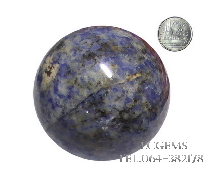ลูกแก้วโซดาไลต์ ลูกนี้มีขนาด 2.5 นิ้ว น้ำหนัก 352 กรัม