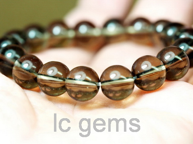 สร้อยข้อมือสโมคกี้ควอตซ์เส้นนี้ สีหมอกควันสีสวย มีขนาด 10 มม. ร้อยด้วยเอ็นยืดเกาหลีอย่างดี
