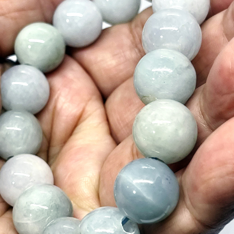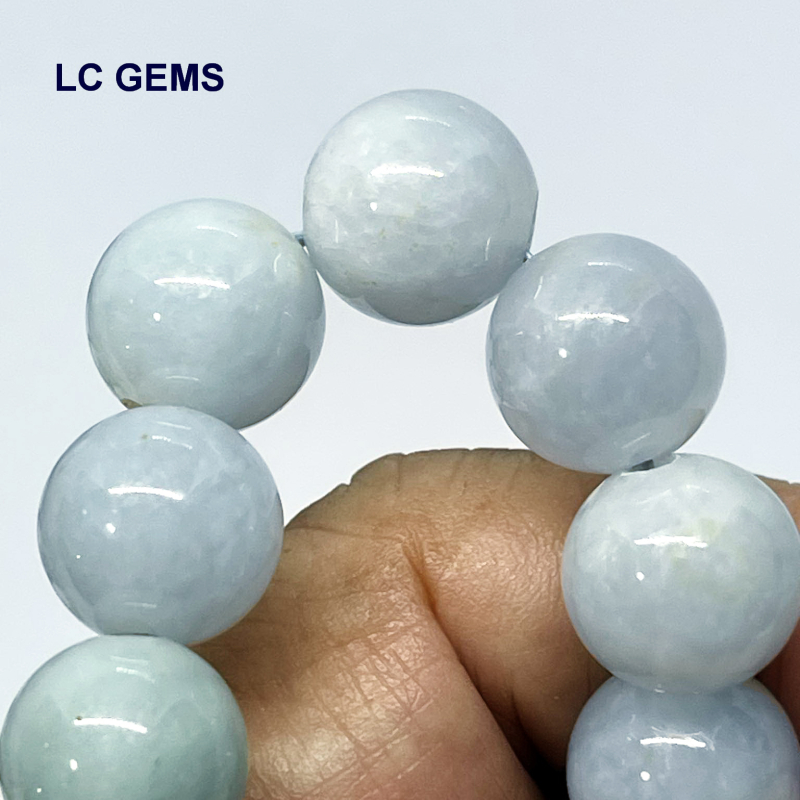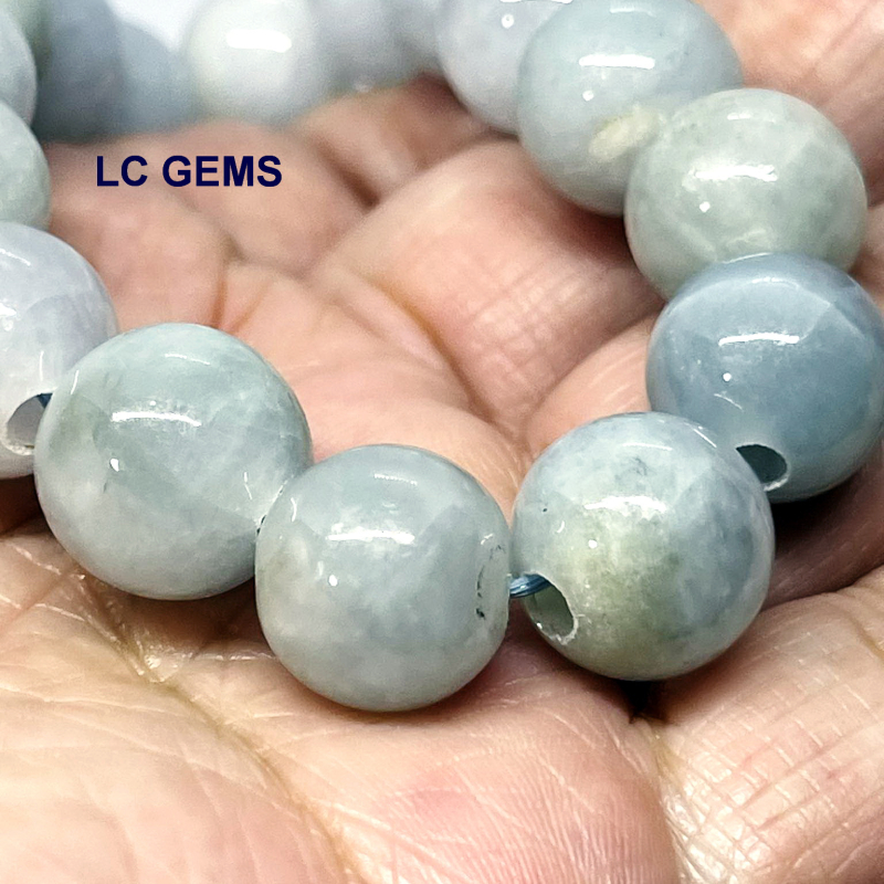 กำไลหยกพม่า เส้นนี้ ประกอบด้วยลูกปัดหยกพม่าสีฟ้าเข้มเนื้อแก้ว เนื้อหยกคุณภาพเกรดพรีเมี่ยม เนื้อหยกมันเงา ขนาดเม็ดเส้นผ่าศูนย์กลาง 13.82 มม. ใช้เอ็นยึดเกาหลีอย่างดี
