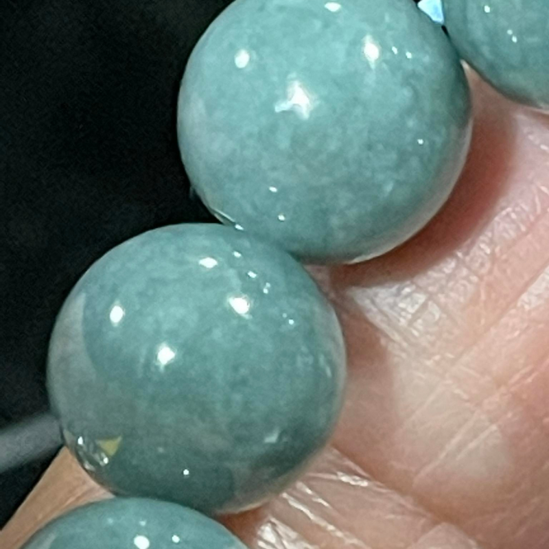 กำไลหยกพม่า เส้นนี้ ประกอบด้วยลูกปัดหยกพม่าสีฟ้าเข้มเนื้อแก้ว เนื้อหยกคุณภาพเกรดพรีเมี่ยม เนื้อหยกมันเงา ขนาดเม็ดเส้นผ่าศูนย์กลาง 12 มม. ใช้เอ็นยึดเกาหลีอย่างดี