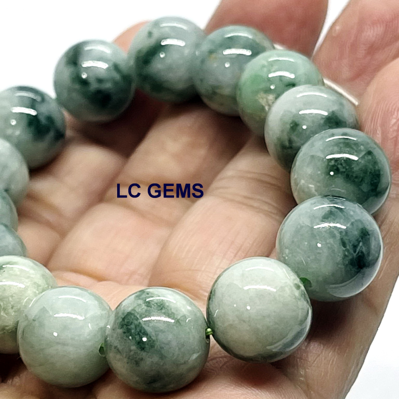 สร้อยข้อมือหยกเขียวมอสอินสโนว์พม่า-13.51 มม. (Burmese Moss In Snow Jade Bracelet)