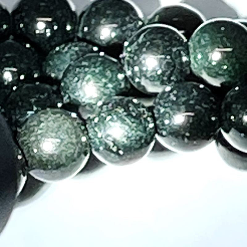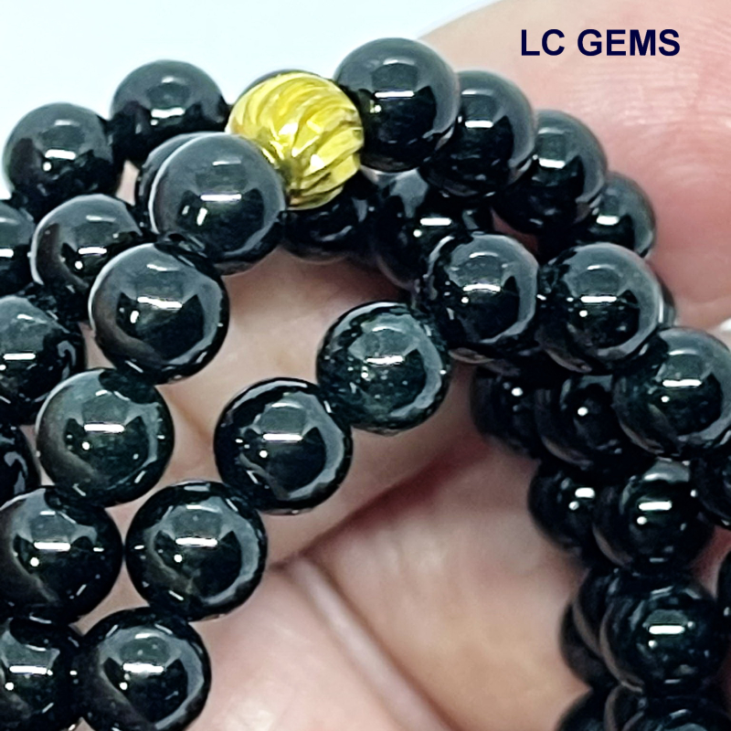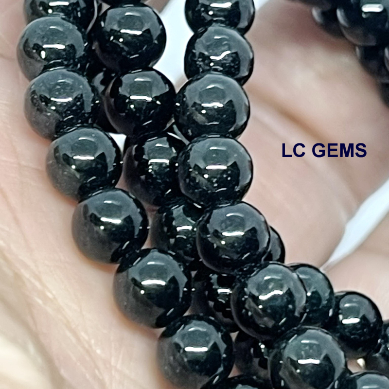 สร้อยคอหยกดำส่องเขียว-6 มม. (Burmese Deep Green Jade Necklace)