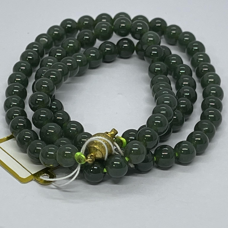 สร้อยคอหยกเขียวพม่า-เนื้อแก้ว-7 มม. (Burmese Jade Necklace)