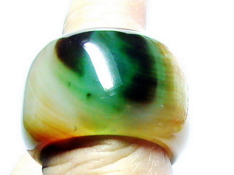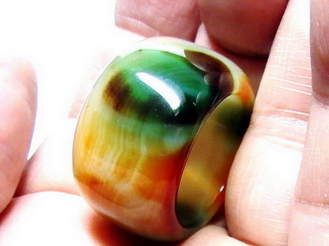 แหวนอาเกตวงนี้ เป็นแหวนทรงปอกมี มีสีพื้นเป็นสีลายน้ำตาล แดง และขาว ขนาดหน้ากว้าง 19 มม. หนา 6 มม. เส้นผ่าศูนย์กลางในวง 21 มม.