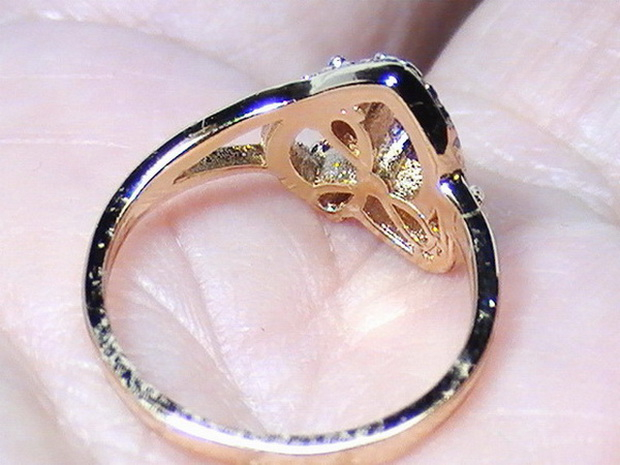 แหวนพลอยมณีใต้น้ำสีเขียว วงนี้ ประกอบด้วยพลอยมณีใต้น้ำ หรือ เพชรพญานาค ทรงหยดน้ำสีม่วง จำนวน 3 เม็ด และพลอยสีขาวเม็ดเล็ก 19 เม็ด ทรงแหวนเป็นรูปดอกไม้กลางหัวใจ พลอยทุกเม็ดสู้ไฟ มีประกายสวยงาม ตัวเรือนทำจากโลหะกระไหล่ทอง ไม่ลอกไม่ดำ หัวแหวนมีขนาดกว้าง 13 มม. ยาว 13 มม. เส้นผ่าศูนย์กลางภายในวงแหวน 17 มม. หรือ Size 53