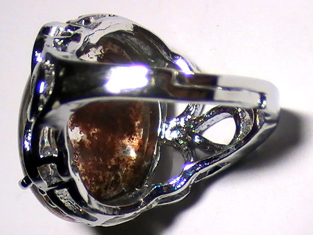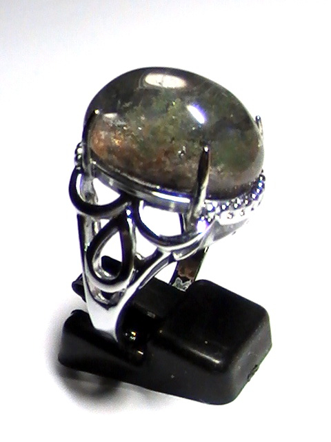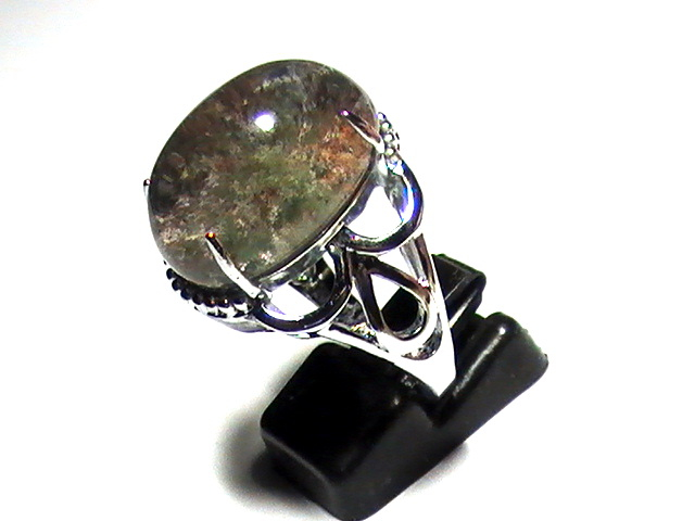 แหวนโป่งข่ามแก้วสามกษัตริย์ วงนี้เป็นสามกษัตริย์แบบมีปวกเขียว, โกโก้ และแดง รวมในเม็ดเดียวกัน ตัวเรือนเป็นทองแดงชุบทองคำขาว ขนาดของพลอยหัวแหวน 16x21 มม. ขนาดในวง 18 มม. (สามารถปรับขยาดขนาดเองได้)