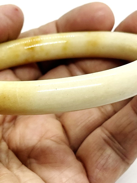 กำไลควอตซ์สีงาช้าง หรือหยกน้ำ วงนี้ เป็นหินควอตซ์จากพม่า เป็นกำไลทรงโดนัท หรือทรงมวนบุหรี่ มีขนาดหน้ากว้าง 10.75 มม. หนา 9.29 มม. เส้นผ่าศูนย์กลาง 62.88 มม. เนื้อควอตซ์เนียนสวย