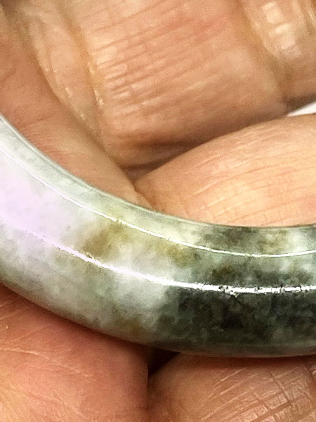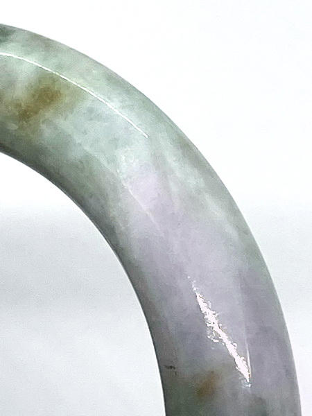 กำไลหยก วงนี้ เป็นหยกพม่าสามสี คือ สีขาว สีเขียว และสีม่วง หน้ากว้าง 11.4 มม. หนา 10.9 มม. เส้นผ่าศูนย์กลางภายใน 55.0 มม.