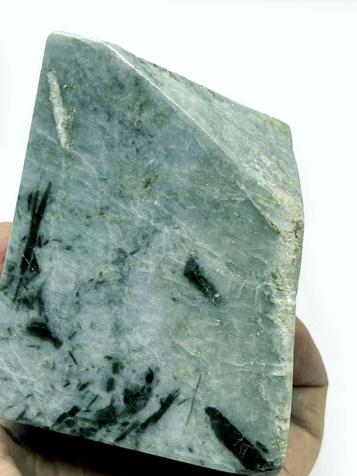 ก้อนหยกพม่า ก้อนนี้ เป็นหยกฟ้าพม่า เจไดต์ Type A สีฟ้าธรรมชาติ มีขนาดกว้าง 8.5 ซ.ม. ยาว 9 ซ.ม. หนา 7.5 ซ.ม. มีน้ำหนัก 1,655 กรัม เก็บไว้เป็นมงคล หรือจะนำไปแกะเป็นพระ และเครื่องประดับต่างๆ
