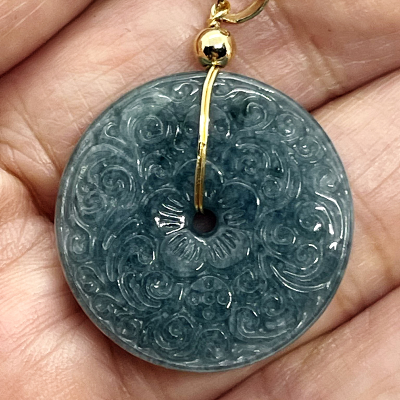 จี้เหรียญหยกฟ้าพม่า (Burmese Jade Donut Pandant)