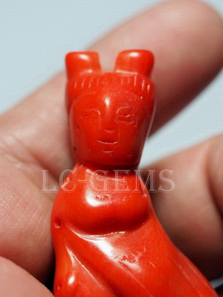 นางฟ้า องค์นี้ แกะจากแท่งหินปะการังแดง มีขนาดกว้าง 24 มม. สูง 66 มม. หนา 16 มม.