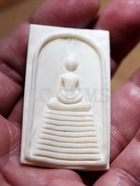 (ชมสินค้าอื่นได้ที่ WWW.LCGEMS.net)งาเป็นสัญลักษณ์ของความบริสุทธ์และเป็นมงคล เสริมด้านคงกระพัน เสริมบารมี แก้อาถรรพ์ มีเสน่ห์พระเครื่องสมเด็จเก้าชั้น องค์นี้ แกะจากงาช้าง มีขนาดกว้าง 32 มม. สูง 54 มม. หนา 8 มม.