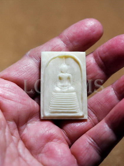 พระเครื่องสมเด็จเก้าชั้น องค์นี้ แกะจากงาช้าง มีขนาดกว้าง 25 มม. สูง 4o มม. หนา 6 มม.