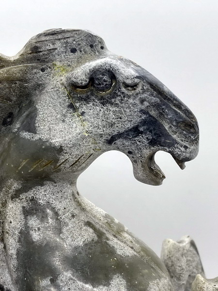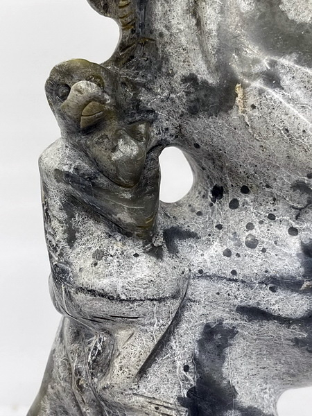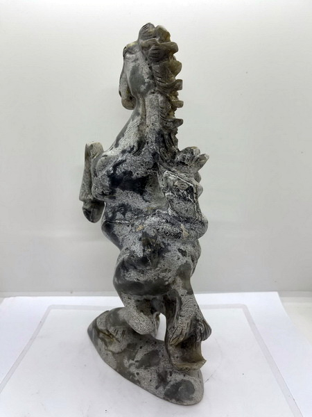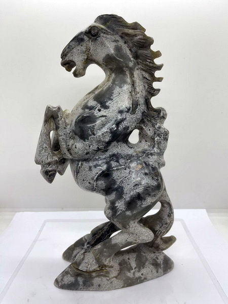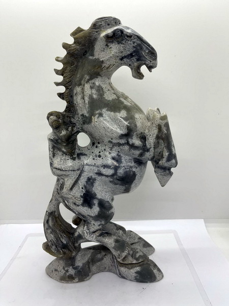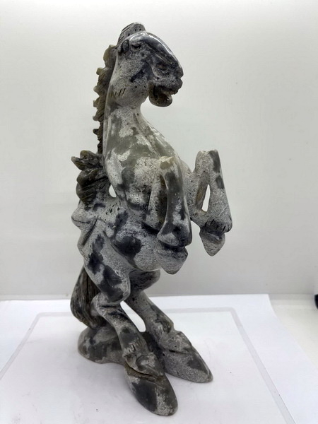 ม้าหยก ตัวนี้ เป็นม้าหยกของโบราณ ม้ายกขาทั้งสองขามีลิงขี่ที่หลัง มีขนาดกว้าง 6 ซม. หนา 15 ซม. สูง 26 ซม.