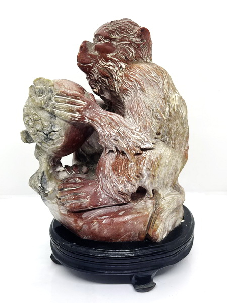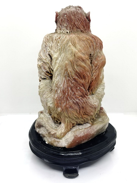 ลิงหยก ชิ้นนี้ แกะจากหยกแดง แกะเป็นตัวลิงถือรังผึ้ง ลวดลายคมชัด มีขนาดกว้าง 12 ซม. สูง 17 ซม.หนา 20 ซม.