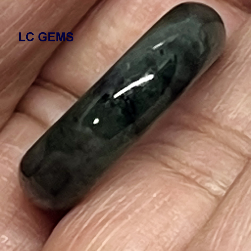 แหวนหยกเขียว วงนี้เป็นหยกพม่า เจไดต์ Type A สีดำส่องเขียว ขนาดหน้ากว้างประมาณ 7.04 มม. หนา 3.65 มม. เส้นผ่าศูนย์กลาง 17.22 มม. หรือเบอร์ 54.5