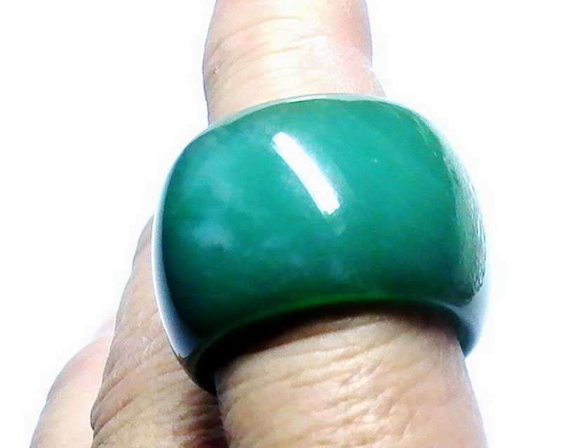 แหวนหยกเขียว วงนี้มี เนื้อแก้ว สีเขียว แสงลอดได้ ขนาดหน้ากว้าง 20 มม. หนา 5 มม. เส้นผ่าศูนย์กลางในวง 22 มม.
